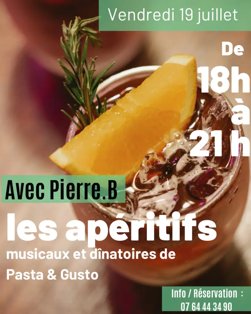 Les apéritifs musicaux et dînatoires de Pasta & Gusto Vendredi 19 juillet, pour la première des apéritifs musicaux et dînatoires, nous recevrons Pierre B.